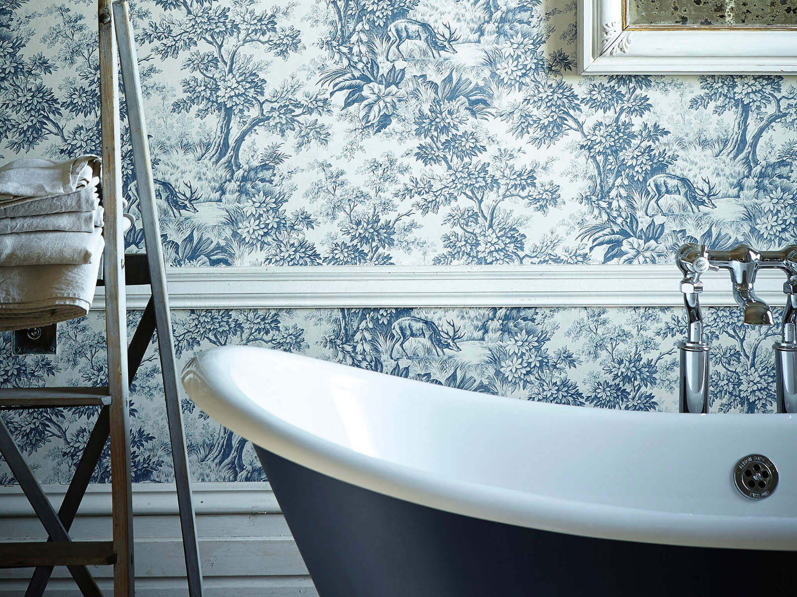 De Revolution Papers Stag Toile - Juniper van Little Greene brengt niet alleen stijl, maar ook geschiedenis in elke ruimte. De unieke print, afgeleid van een 19de-eeuwse Engelse linnen stof, straalt een ingetogen luxe uit. Het hoofdmotief, een majestueus edelhert, vangt onmiddellijk de aandacht en voegt een vleugje natuurlijke pracht toe aan je muren. In tegenstelling tot de formele Toile de Jouy ontwerpen uit het 18de-eeuwse Frankrijk, biedt het Stag Toile behang een eigentijdse twist met zijn minder formele uitstraling.