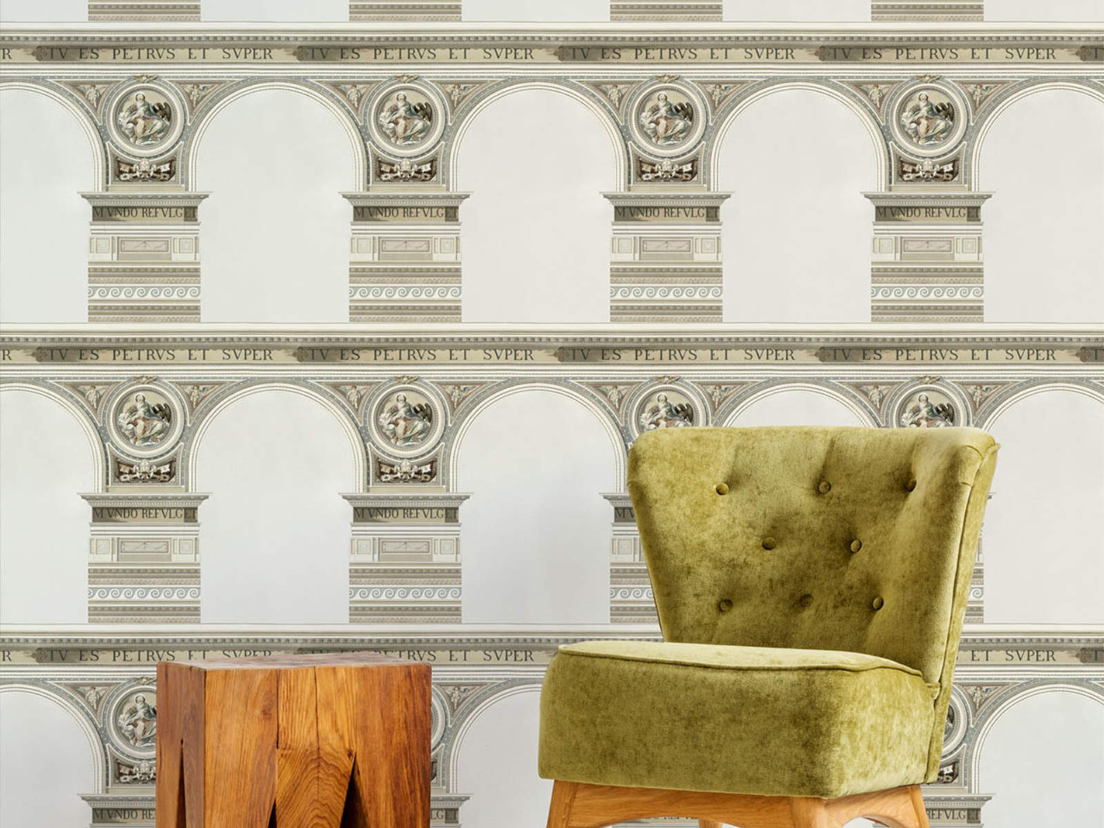 De World of Fabrics Basilique - WP20220 van Mind The Gap behang is geïnspireerd op de mooie gewelfde elementen van de architectuur van de Sint-Pietersbasiliek in het Vaticaan.