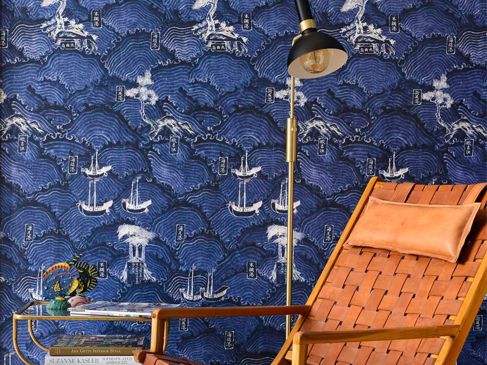 De Indigo Addiction Waves Of Tsushima - WP20513 van Mind The Gap behang creëert het gevoel van een oude Japanse houtsnede met denkbeeldige golven en boten in diepe indigo tinten. Het dessin is geïnspireerd op antieke kunstwerken die gemaakt zijn met deze traditionele techniek en zal zeker de aandacht trekken in elke kamer. Met dit behang haal je een stukje Japanse geschiedenis en cultuur in huis.