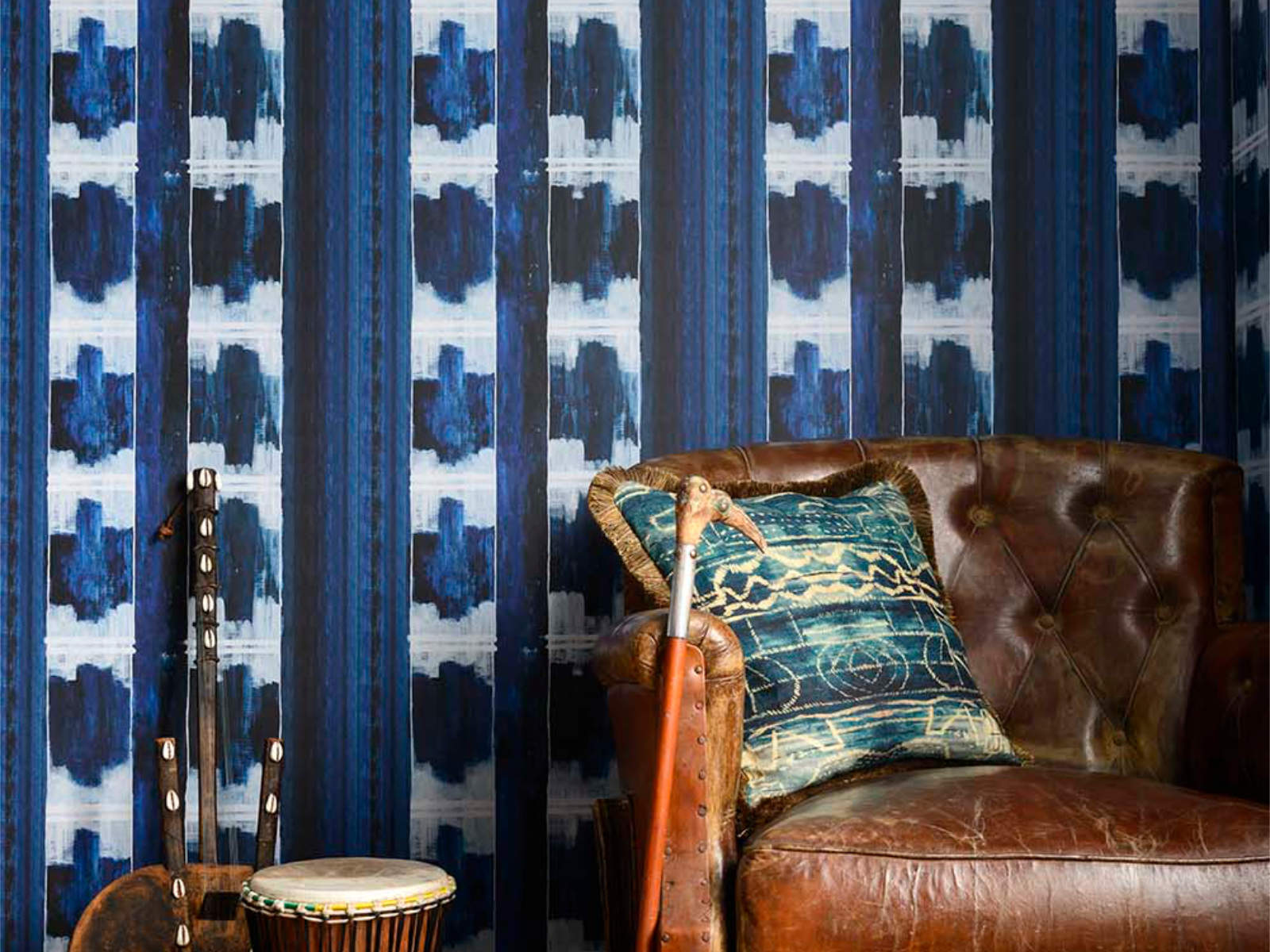 De Indigo Addiction Yoruba - WP20514 van Mind The Gap behang heeft een intrigerend patroon in diep blauw en wit, geïnspireerd door het traditionele Nigeriaanse Yoruba Ashoke weefsel dat handgeweven is en gedragen wordt tijdens belangrijke ceremonies. Dit behang brengt een vleugje Afrikaanse cultuur en verfijning in je interieur.
