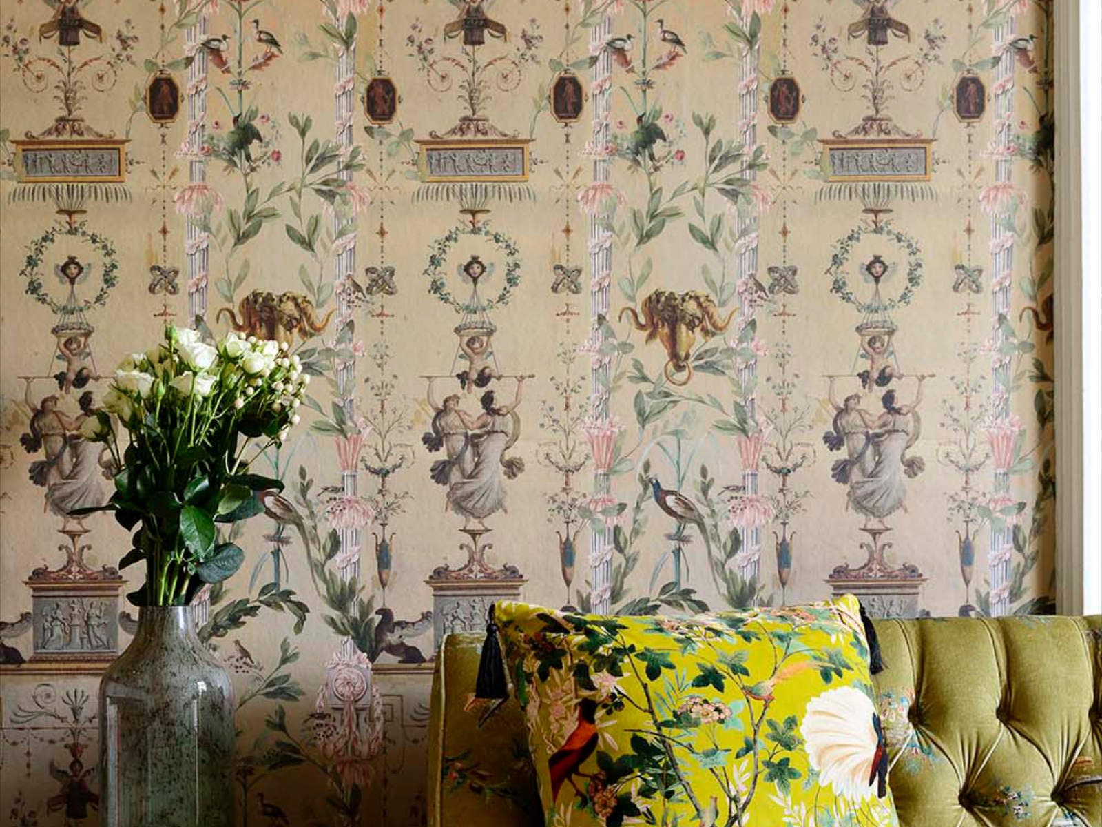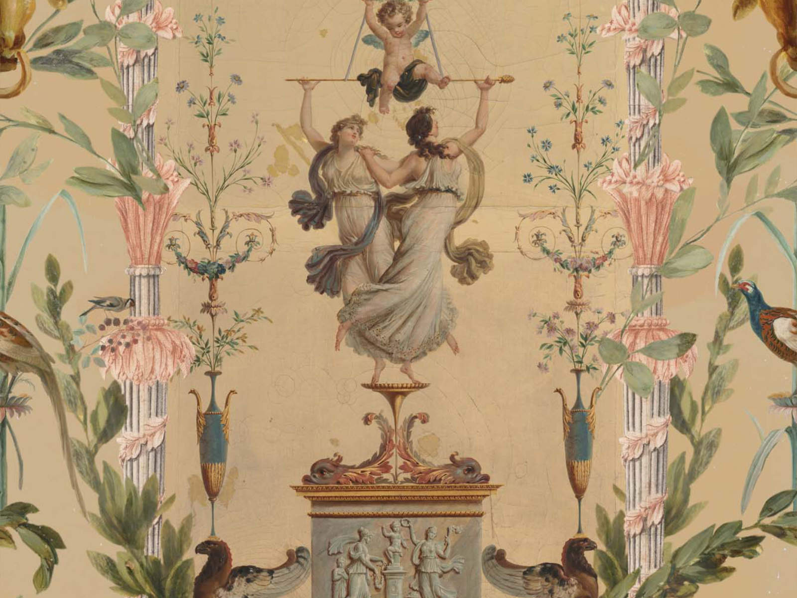 De Le Manoir Dancing Graces - WP20460 van Mind The Gap behang is een prachtige verzameling behang geïnspireerd op Franse stijl uit de late 18e eeuw, gecreëerd door Pierre Rousseau. Dit dessin was destijds zeer geliefd bij de Franse koninklijke huizen om hun kastelen en landhuizen mee te decoreren. Het is een elegante decoratie die een vleugje van de Franse adel aan uw interieur toevoegt.