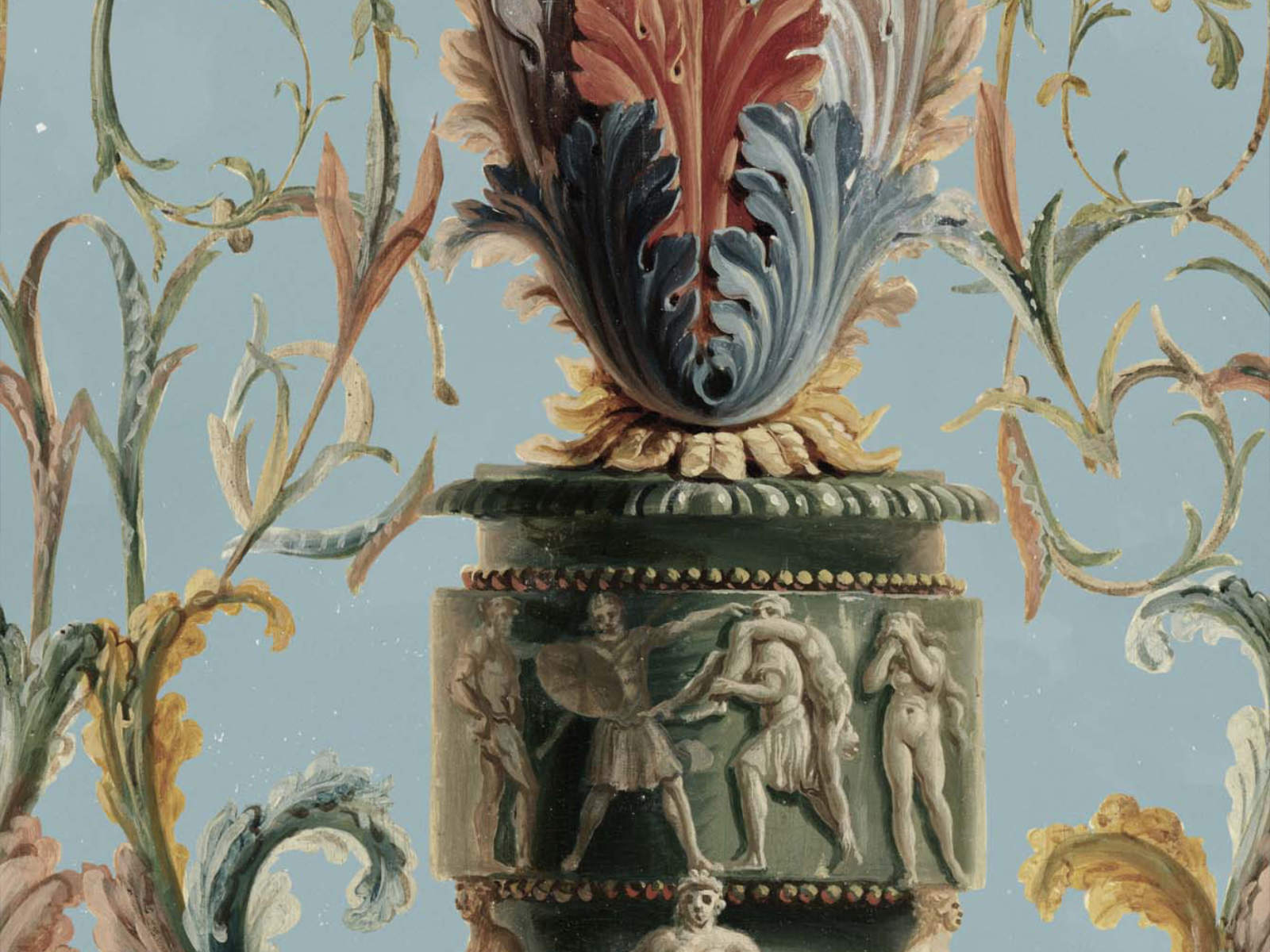 De Le Manoir Le Jardin Secret - WP20461 van Mind The Gap behang is een weelderige behangstijl met decoratieve en groteske olieverf elementen van het huis van een Nederlandse edelman. Het dessin is geïnspireerd op Renaissance kunst en toont prachtige decoratieve motieven op een lichtblauwe achtergrond. Met dit behang haal je een stukje historie in huis en creëer je een elegante en luxueuze uitstraling in je interieur.