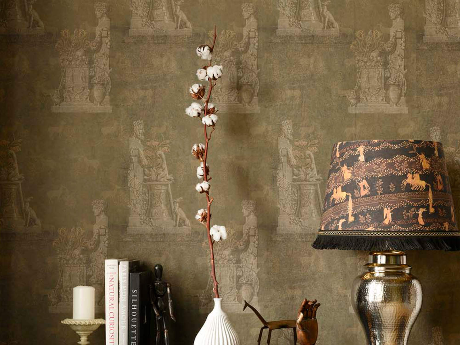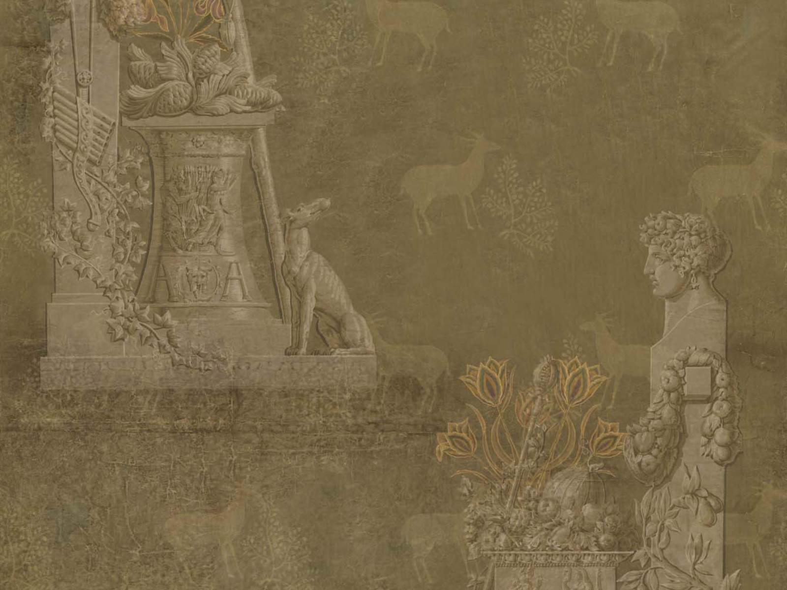 De Le Manoir Sculptural Moss - WP20475 van Mind The Gap behang is geïnspireerd op Griekse mythische beelden en symbolen, waardoor het behang een prachtige antieke uitstraling heeft. Het lijkt wel alsof het behang uit een oud kasteel komt, dankzij de zorgvuldig aangebrachte vintage wassing. Breng een vleugje historie in je interieur met dit unieke en stijlvolle behang.