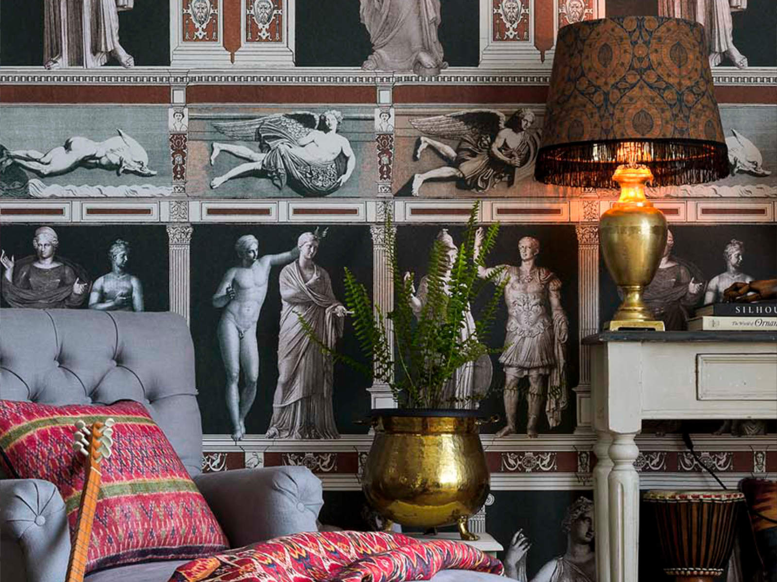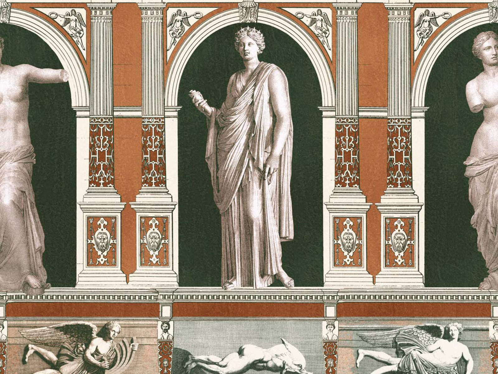 De Le Manoir Statues Antique - WP20422 van Mind The Gap behang bevat geïllustreerde beroemde standbeelden die gebaseerd zijn op originele exemplaren die te zien zijn in het Musee Royale, het Franse koninklijke museum. Het behang is gemaakt op 3 panelen om het patroon te maximaliseren en is verkrijgbaar in twee kleuropties: oranje en taupe. Met dit behang haal je een stukje Franse geschiedenis in huis en geef je jouw interieur een unieke uitstraling.