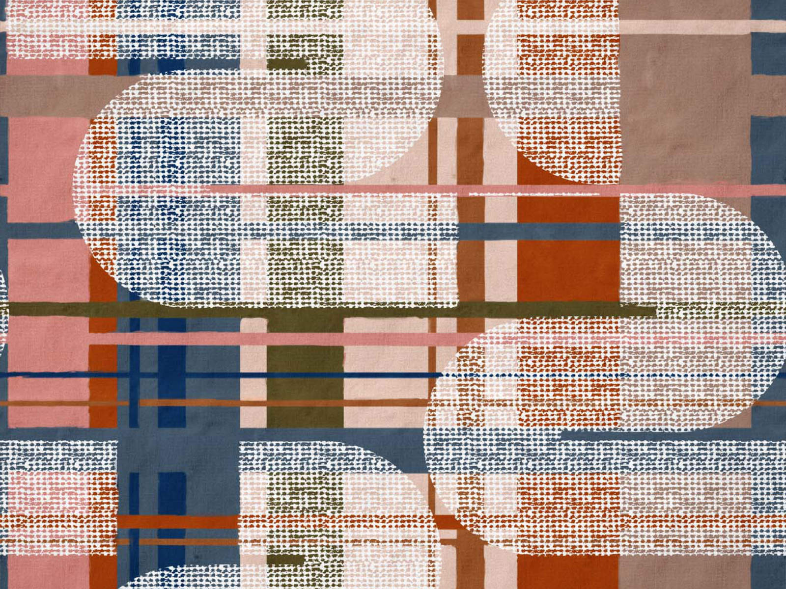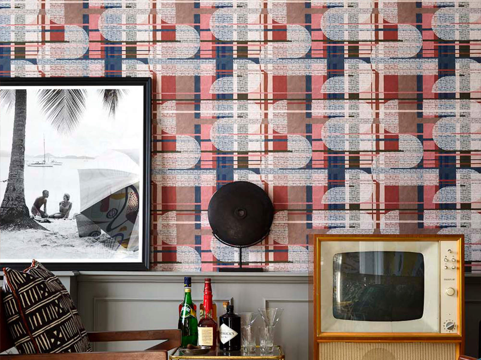 De Revival Interference - WP20535 van Mind The Gap behang is geïnspireerd op de Bauhaus kunstbeweging. Het dessin is een mix van handgeschilderde ruiten in zachte tinten, getemd door de contrasterende golvende vorm die het hele ontwerp verenigt. Dit behang geeft een moderne uitstraling aan je interieur en is perfect voor een eigentijdse look in elke kamer.