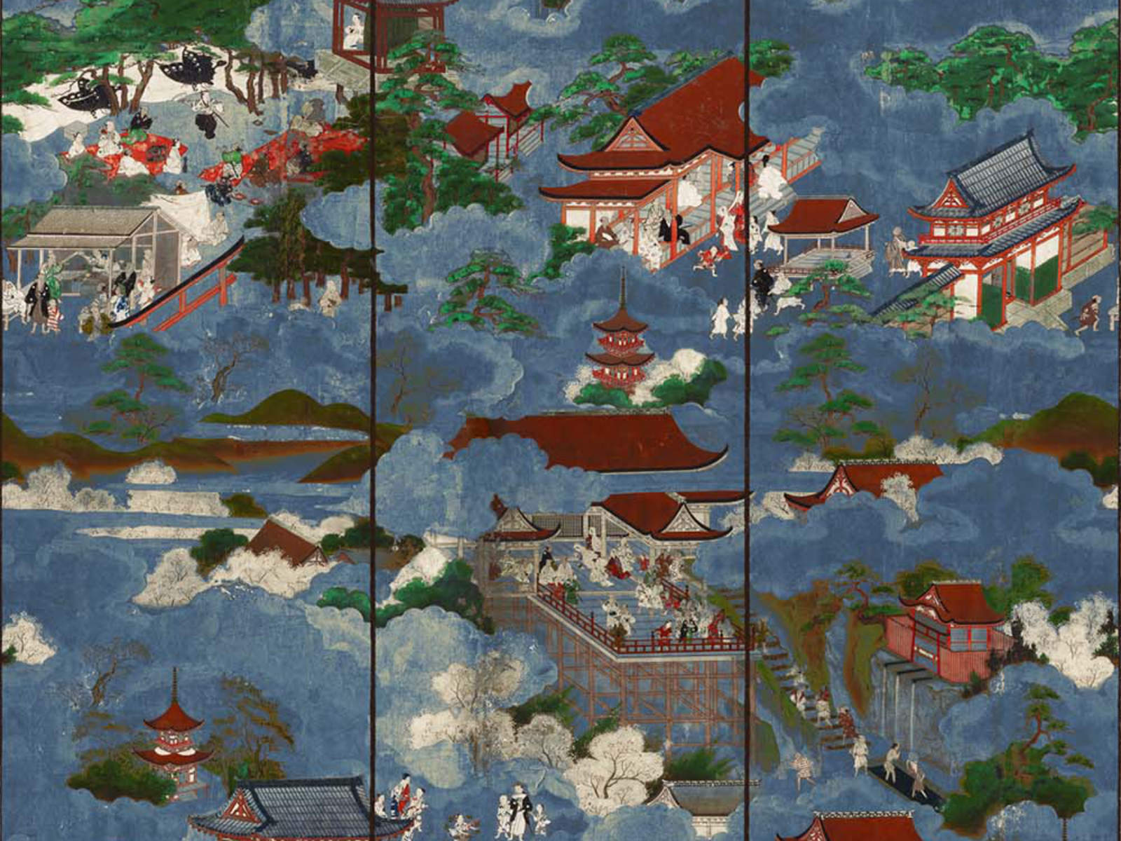 The Curator's Cabinet Floating World Blue - WP20646 van Mind The Gap behang is een reis door het verleden en de verbeelding. Zweef boven het mysterieuze land van het oude Japan met een patroon dat het dagelijks dorpsleven afbeeldt te midden van majestueuze gebogen daken, bomen die fluffy bloesems uitstoten en een achtergrond van ruige bergen. Neem thee, trek je zwaard of verzamel voor muziek in illustratieve vignettes die gewichtloos in de lucht hangen en een levendige gemeenschap creëren die zich uitstrekt over muren van elke grootte. Elk gebouw of activiteit is genesteld in weelderige gouden of humeurige middentoonblauwe wolken voor de meest betoverende expeditie naar het oosten