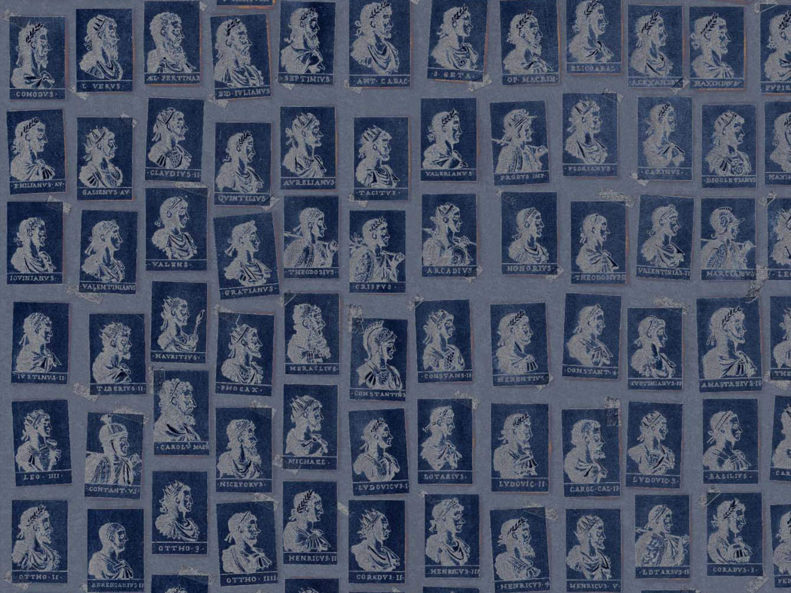 The Gentlemen's Corner Emperors Blue - WP20462 van Mind The Gap behang is een uniek behang dat 120 handgetekende portretten van alle Romeinse keizers bevat. Het dessin is geïnspireerd op de geschiedenis en de Romeinse cultuur en zal een ware eyecatcher zijn in elke kamer. Het behang is ontworpen op 3 rollen voor maximale patroonherhaling en is verkrijgbaar in de kleuren antraciet, khaki en indigo. Laat je inspireren door de keizers en geef je interieur een historisch tintje met dit prachtige behang.