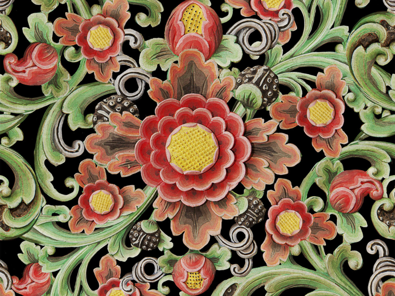 The Mysterious Traveler Floral Painting - WP20251 van Mind The Gap behang is een adembenemend ontwerp, met met de hand beschilderde, krachtige bloemmotieven in levendige kleuren. Transformeer je interieur met dit betoverende behang.