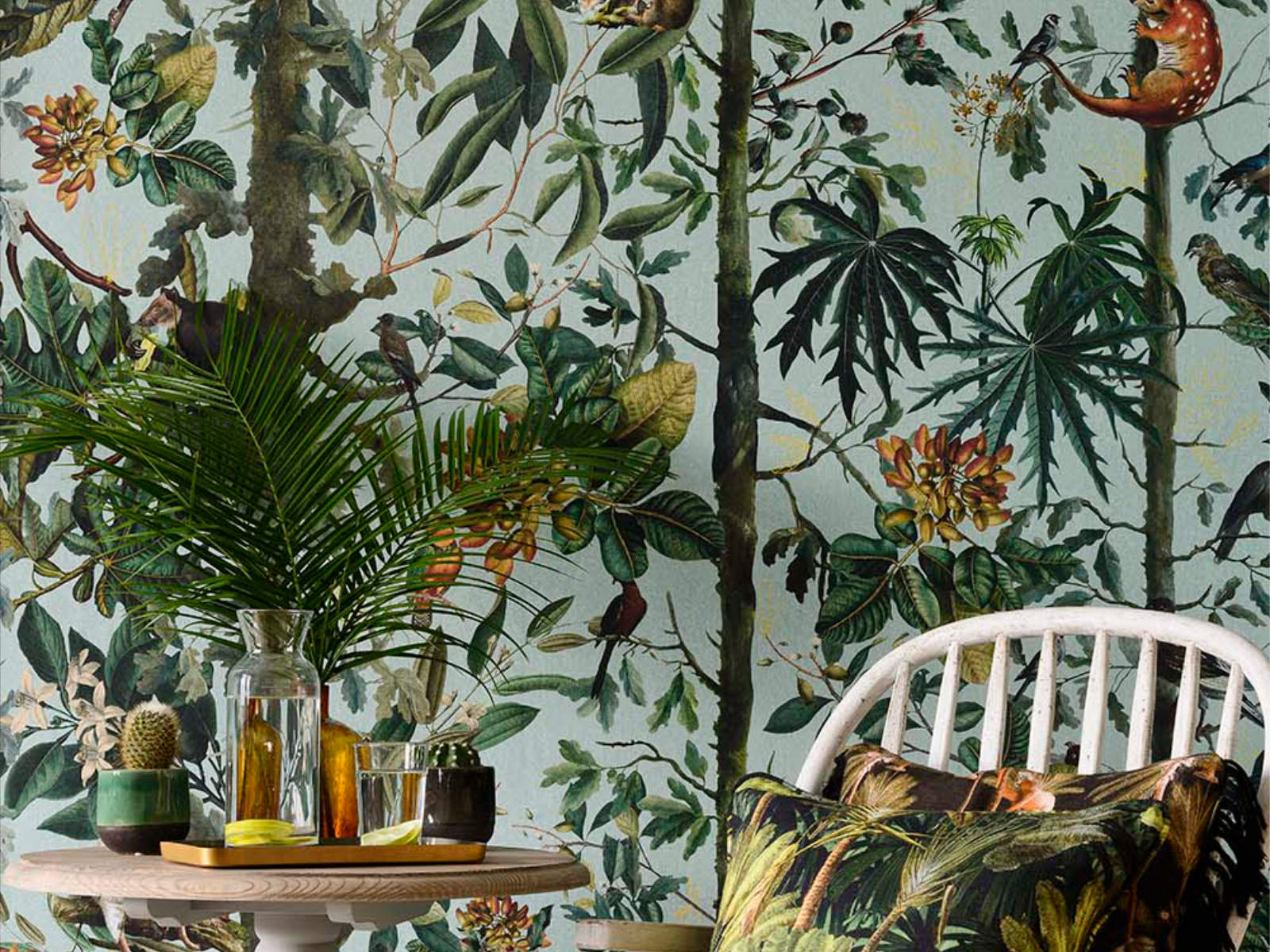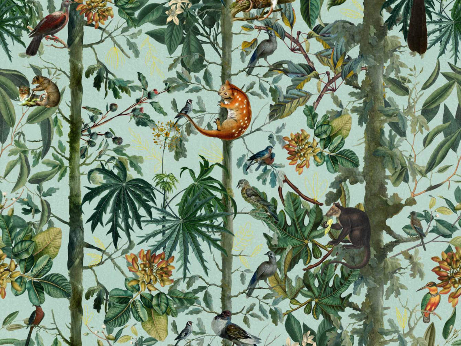 De Tropical Wanderlust Wildlife Of Papua - WP20528 van Mind The Gap behang is een avontuurlijke reis door de regenwouden van Papoea-Nieuw-Guinea. Het behang toont de prachtige flora en fauna van een van de meest ongerepte bossen ter wereld, met bijzonder geïllustreerde bedreigde diersoorten in een uniek muurschildering ontwerp. Het patroon wordt maximaal herhaald door de 3 rollen waaruit het behang bestaat en is verkrijgbaar in twee kleurversies: licht en donker. Laat je fantasie de vrije loop en haal de natuur in huis met dit opvallende behang.