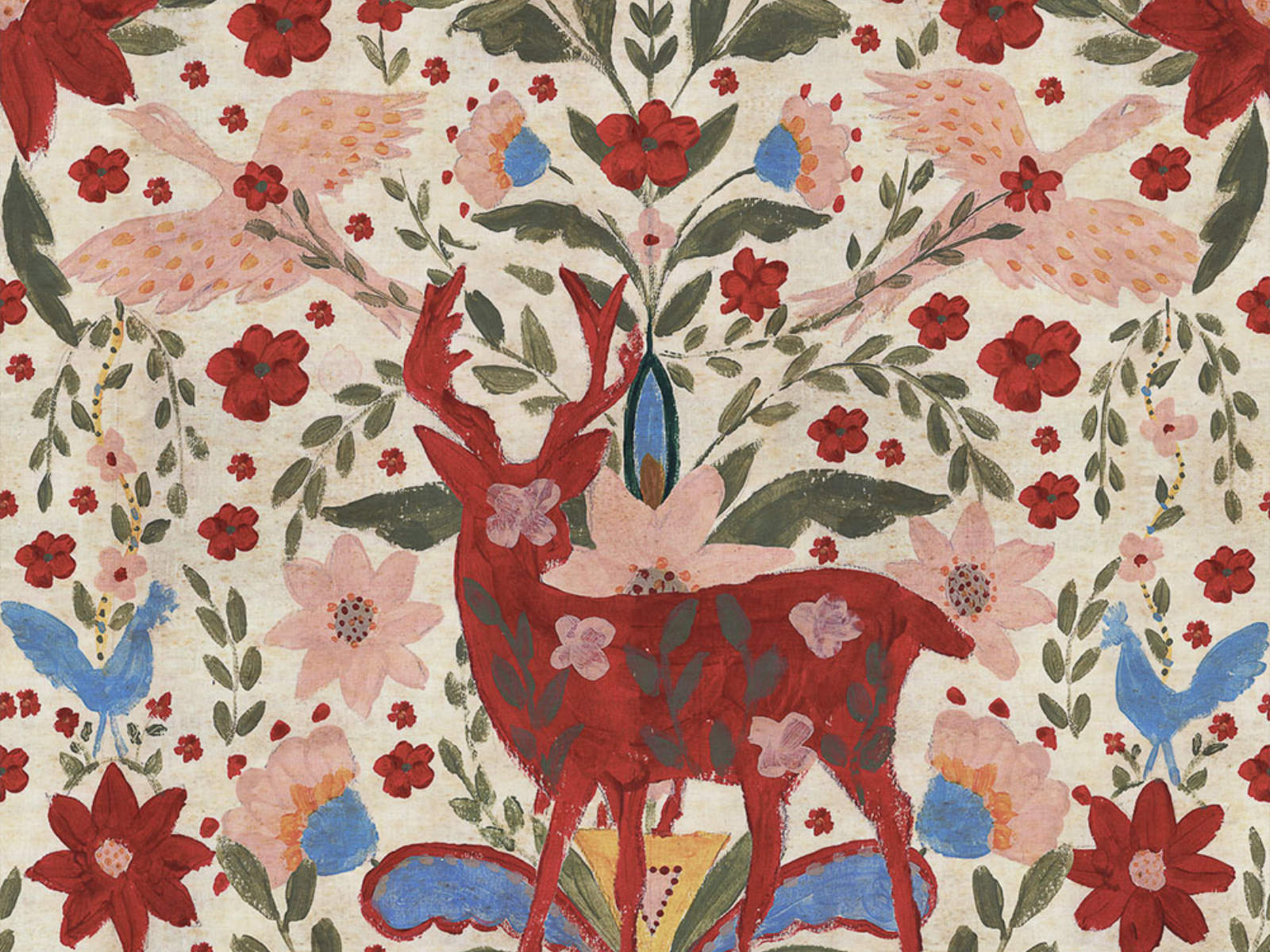 De Tyrol Der König Red - WP20707 van Mind The Gap behang is één van de opvallende behangontwerpen uit deze collectie. Dit prachtige behang heeft een handgeschilderd ontwerp met als belangrijkste element het meest koninklijke beest van de Tyrol: de hertenkoning. Mystieke vogels vliegen rond terwijl een kudde levendige herten zich vermengt met een tapijt van folk-geïnspireerde bloemen en bladeren die afgebeeld zijn als silhouetten. Dit ontwerp is verkrijgbaar op een achtergrond die zo bleek is als de sneeuw of zo zwart als de middernachtelijke hemel, waardoor het een verfijnde uitstraling heeft die past bij verschillende interieurstijlen.