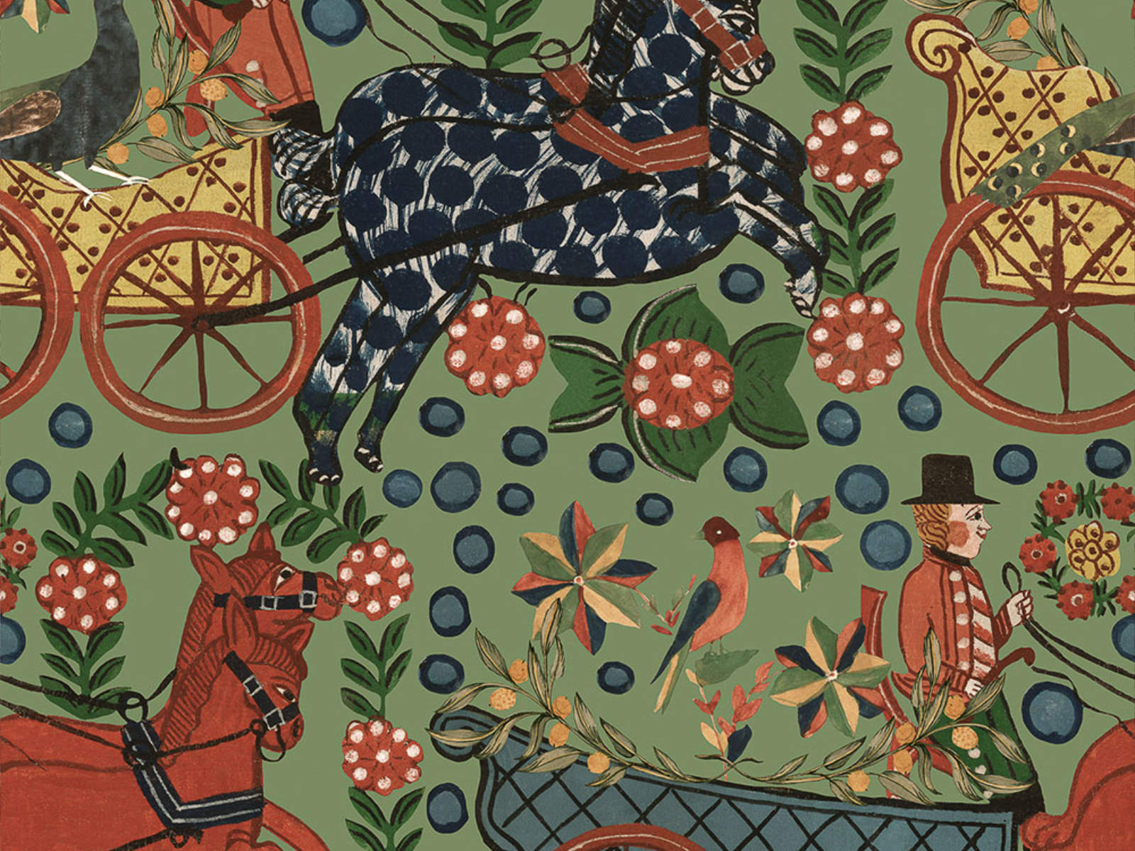 De Tyrol Fasnacht Absinth - WP20679 van Mind The Gap behang is één van de opvallendste behangontwerpen uit deze collectie. Met dit behang word je direct getransporteerd naar het prachtige carnaval van Innsbruck en beleef je de vreugde en opwinding van het Zwitserse favoriete festival. Fasnacht is een explosie van patronen en kleuren die de sfeer van ouderwetse kermissen nabootst, waarbij de lokale bevolking de winter vierde met al zijn seizoensgebonden rituelen. Een parade van kleurrijke koetsen, top-hatted koetsiers en hoog-steigerende paarden galopperen over het behang, waardoor de vrolijke en feestelijke sfeer van het carnaval perfect wordt weergegeven.