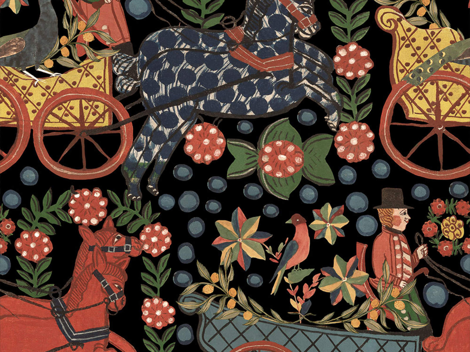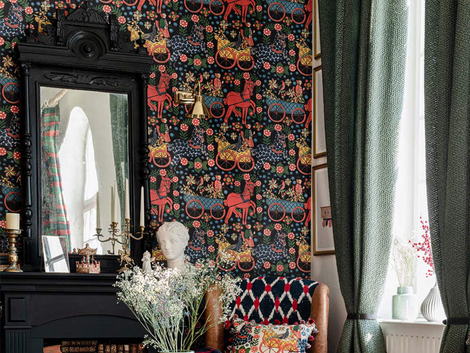 De Tyrol Fasnacht Anthracite - WP20678 van Mind The Gap behang is één van de opvallendste behangontwerpen uit deze collectie. Met dit behang word je direct getransporteerd naar het prachtige carnaval van Innsbruck en beleef je de vreugde en opwinding van het Zwitserse favoriete festival. Fasnacht is een explosie van patronen en kleuren die de sfeer van ouderwetse kermissen nabootst, waarbij de lokale bevolking de winter vierde met al zijn seizoensgebonden rituelen. Een parade van kleurrijke koetsen, top-hatted koetsiers en hoog-steigerende paarden galopperen over het behang, waardoor de vrolijke en feestelijke sfeer van het carnaval perfect wordt weergegeven.
