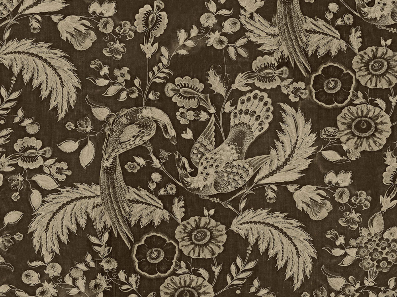 De Tyrol Tyrol Garten Cocoa - WP30141 van Mind The Gap behang is één van de opvallende behangontwerpen uit deze collectie. Dit behang heeft een klassieke uitstraling en is prachtig getekend met oog voor detail en karakter. Het ontwerp van het behang toont exotische vogels met elegante, gevederde staarten die dansen en zwieren tussen een tapijt van delicate bloemen en bladeren. Het ontwerp heeft een tijdloze uitstraling en brengt je terug naar de elegantie van de Tyroolse high-end interieurs.