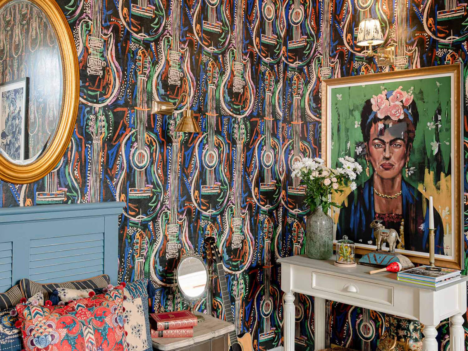 De Woodstock Harmony Dark - WP20614 van Mind The Gap behang is geïnspireerd op Harmony Woodstock, waarbij de focus lag op de muziek en de magie van de instrumenten die erbij hoorden. Dit behang viert de vorm en schoonheid van de gitaar, geplaatst te midden van wervelende abstracte lijnen in psychedelische kleuren die de dromerige sfeer van het festival nabootsen. Laat je meeslepen door de klanken van akoestische en elektrische gitaren, terwijl ze riffs spelen of akkoorden tokkelen op het ritme van het lied dat de kamer vult. Droom weg bij je favoriete muziekgenre en laat de gitaren je er naartoe brengen, terwijl ze opvallen tegen zowel witte als zwarte achtergronden. Met het Harmonu behang van Mind The Gap breng je de muziek in je interieur en creëer je een unieke sfeer.