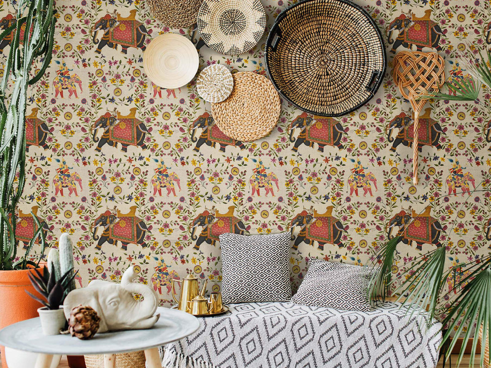 De World of Fabrics Aristocracy Taupe - WP20402 van Mind The Gap behang is een geweldig kunstwerk op een lichte achtergrond, geïnspireerd door traditionele Indiase stoffen. Het dessin is een echte blikvanger en zal elke ruimte een exotische uitstraling geven. Met dit behang creëer je een unieke en sfeervolle ambiance in huis.