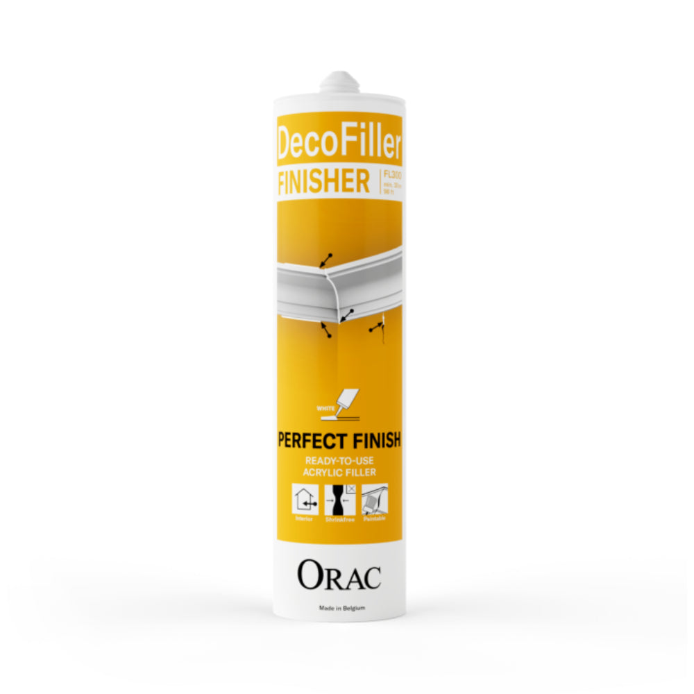Met een inhoud van 310 ml en een dekking van 30 meter is de DecoFiller efficiënt én gebruiksvriendelijk. De kit is geschikt voor vochtige ruimtes, mits afgewerkt met een waterbestendige verf, en is al overschilderbaar na 15 minuten. Ideaal voor wie een snel, professioneel en duurzaam eindresultaat wil creëren bij het monteren van Orac wandpanelen of decoratieve lijsten.