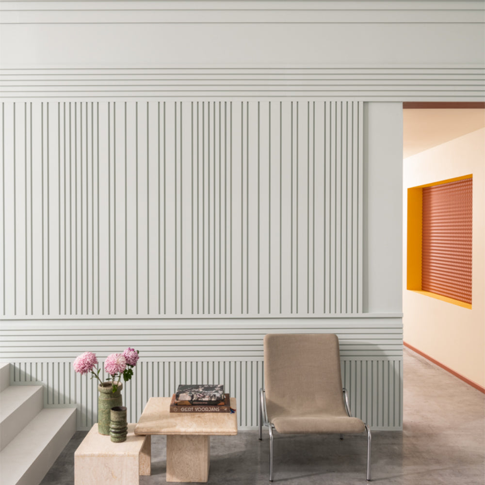 Met zijn gecontroleerde onregelmatigheid is het Orac W119 Bar Mix 3D Wandpaneel de blikvanger binnen elk lineair wandontwerp. Dit uitgesproken 3D patroon laat zich perfect combineren met andere BAR profielen voor een dynamisch en gelaagd effect. Door het spel van lijnen en reliëf breng je eenvoudig diepte, ritme en karakter in je interieur, of je nu kiest voor een subtiele accentwand of een krachtig totaalconcept.