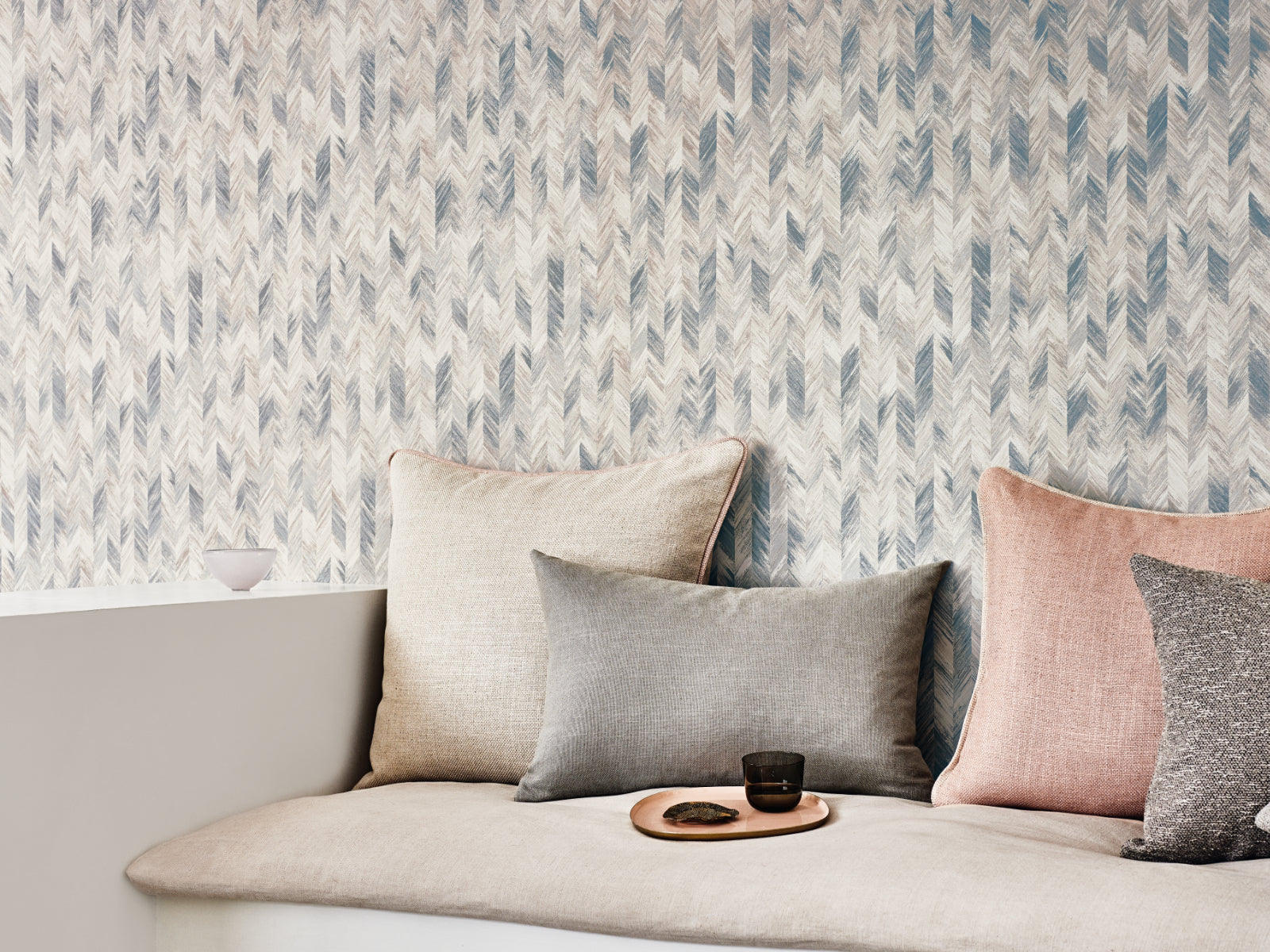 De Picota Picota - Swedish Grey W43902 van Romo toont een verfijnd zigzagpatroon, verweven met textuurdetails. Gebroken metallic accenten en verhoogde ondoorzichtige inkten geven deze muurbekleding diepte en dimensie.