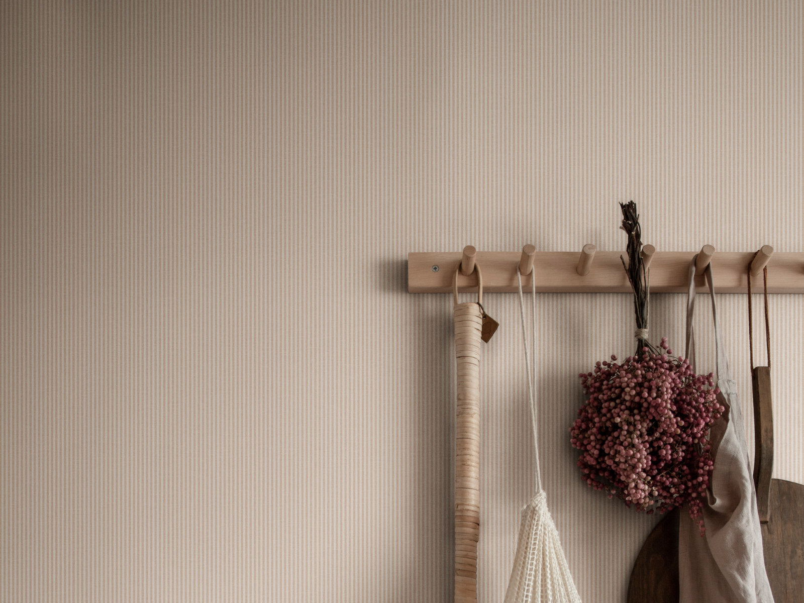 Sandberg Essentials Rand brengt subtiele structuur in je interieur met een fijn bewerkt streeppatroon dat doet denken aan geweven textiel. Van dichtbij zie je de verfijnde lijnen, terwijl het behang van een afstand juist een rustige, bijna effen uitstraling geeft. De naam Rand, Zweeds voor streep, onderstreept de eenvoud en veelzijdigheid van dit ontwerp, dat moeiteloos samengaat met andere patronen uit de Sandberg collecties.