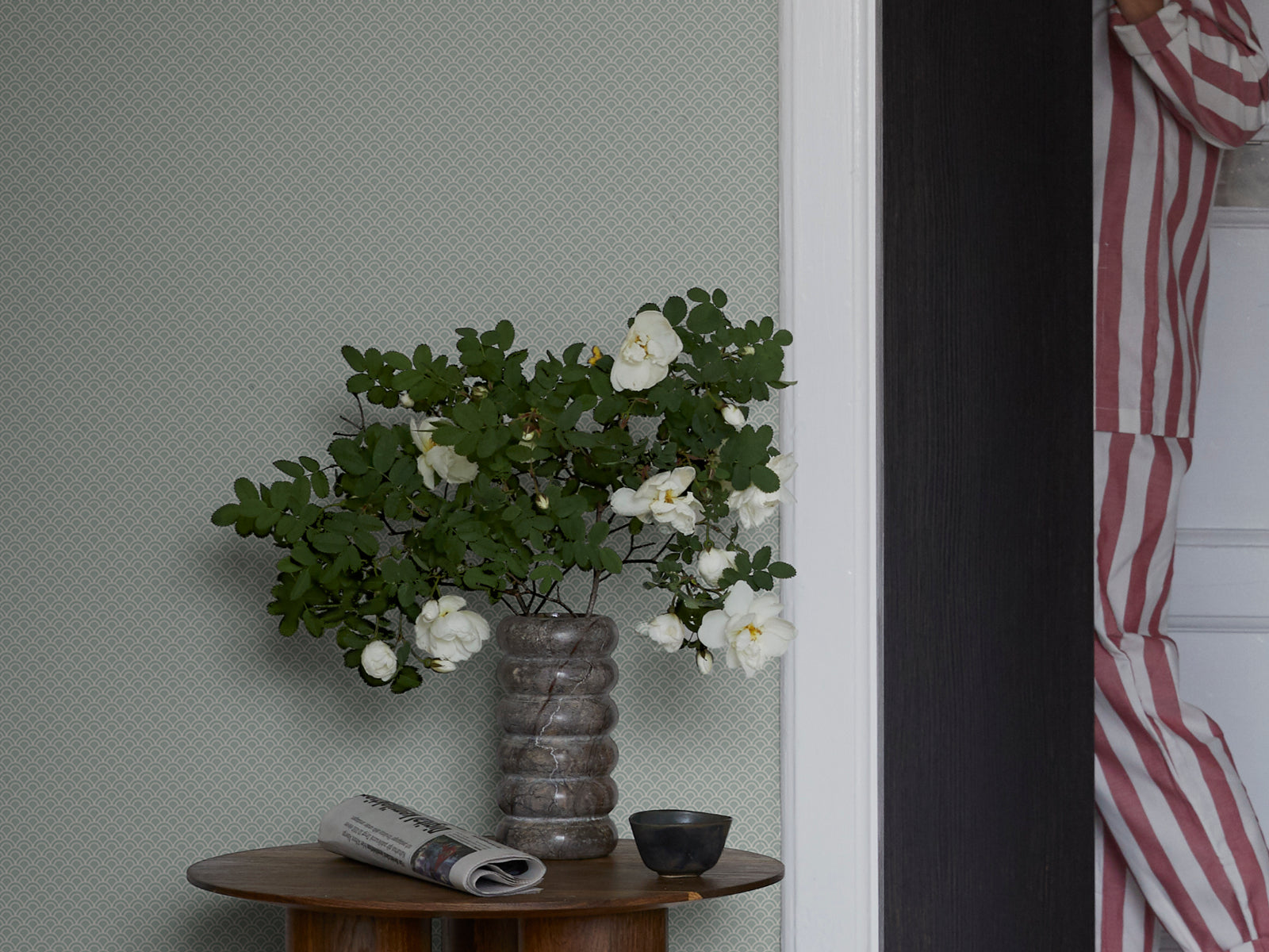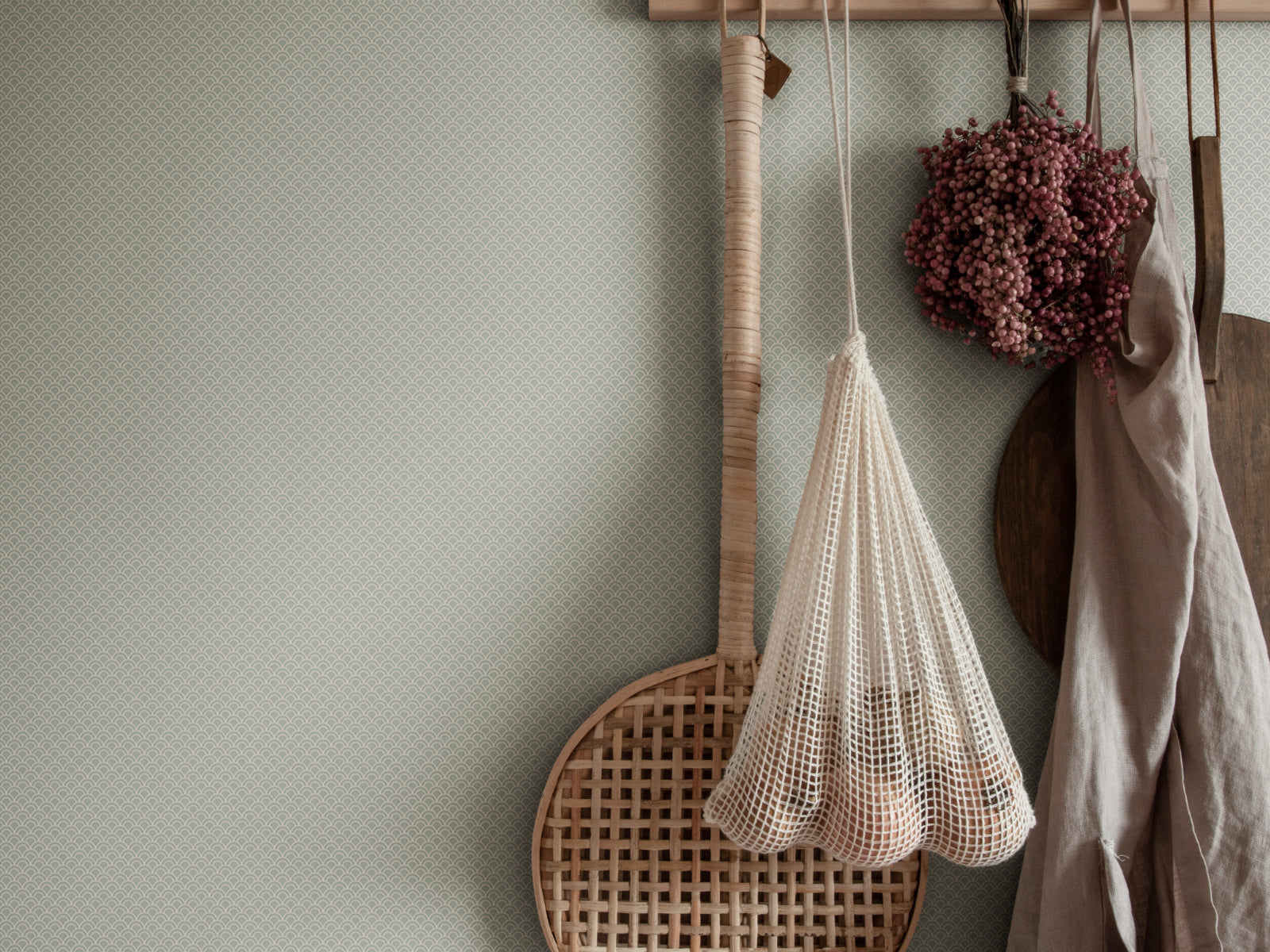 Laat je muren zacht bewegen met Sandberg Essentials Valv, een verfijnd behang met een decoratief golfpatroon dat subtiele invloeden uit het Verre Oosten weerspiegelt. De print, die doet denken aan de elegante vorm van pauwenveren, brengt zowel rust als ritme in je interieur. Van dichtbij ontdek je de rijke details, terwijl het patroon van een afstand een bijna effen uitstraling geeft perfect voor wie textuur zoekt zonder drukte.
