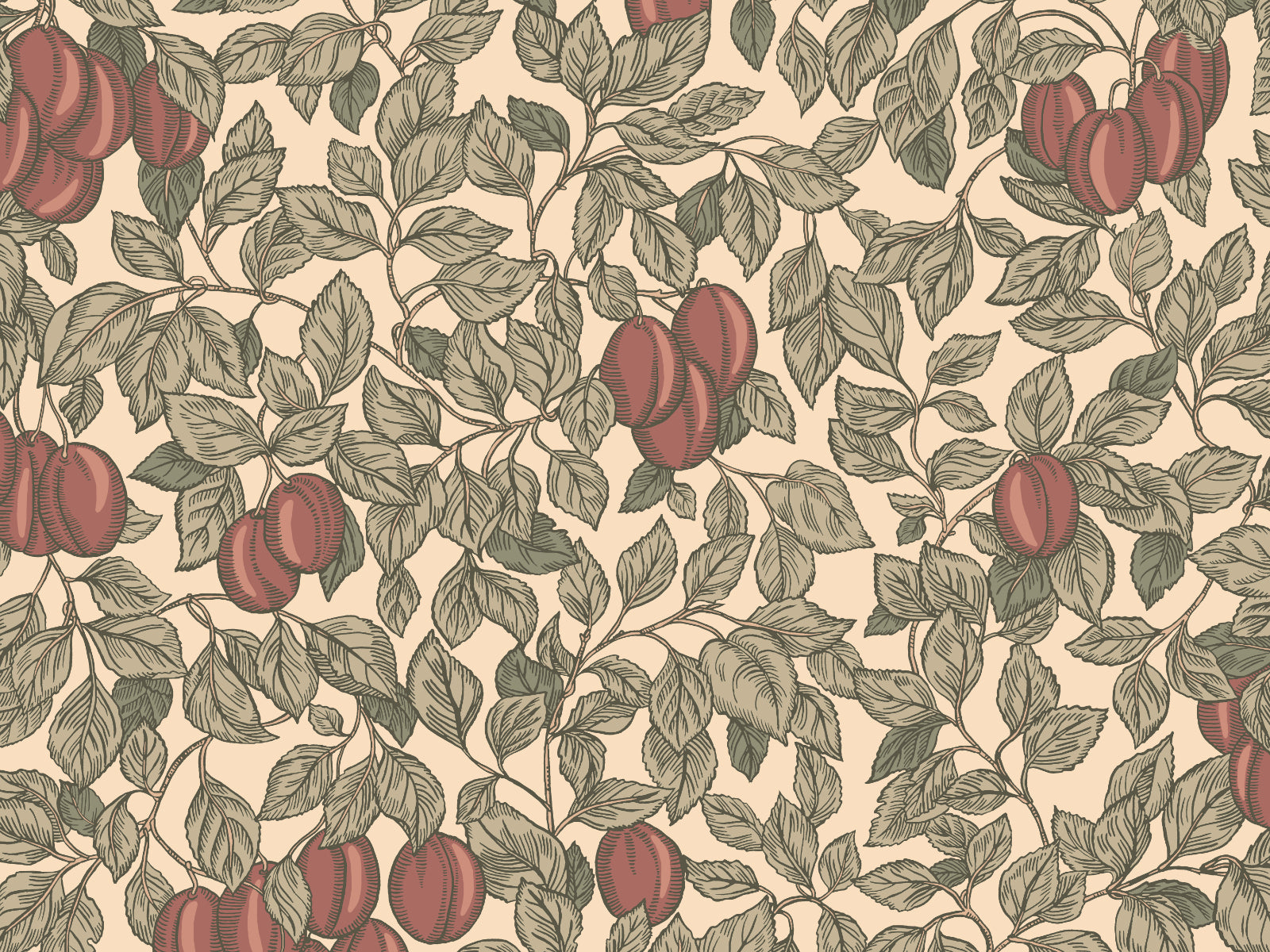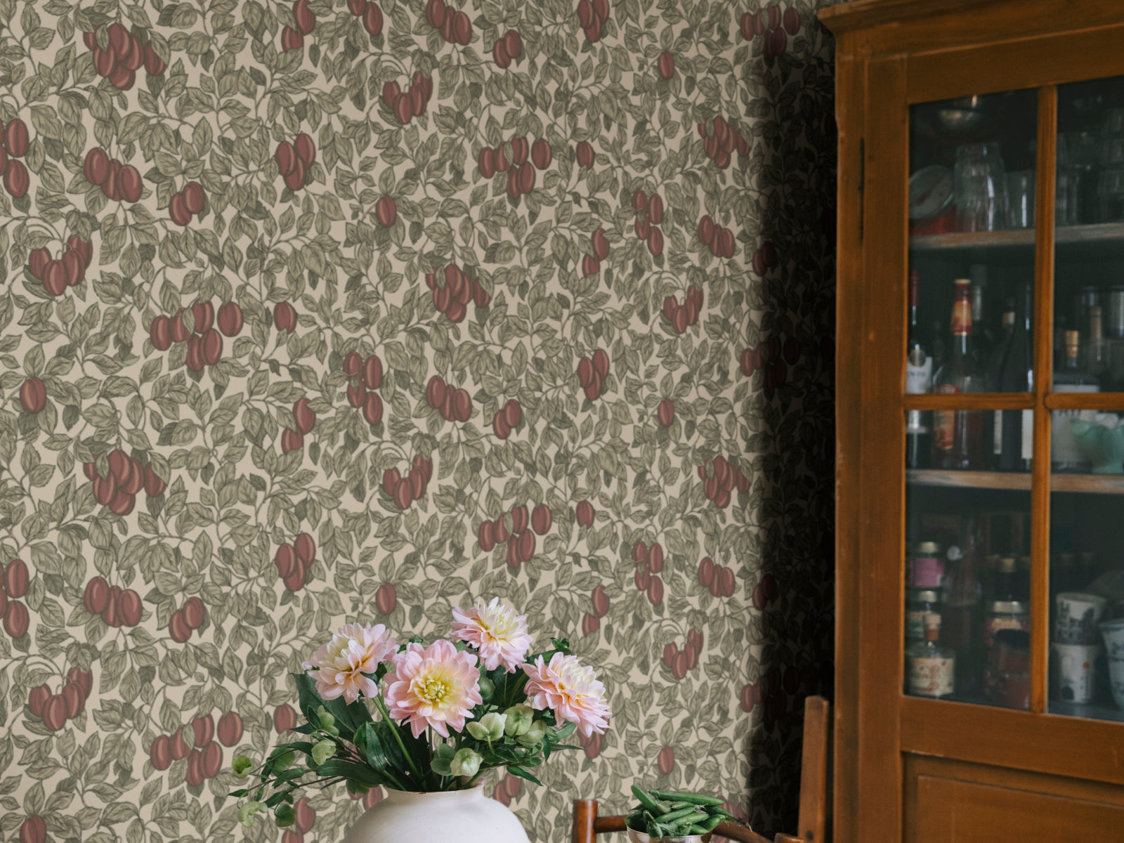 Omhul je ruimte met de weelderige uitstraling van het Öland Emrik behang van Sandberg. Dit botanische patroon toont een dicht samenspel van pruimentakken, volle bladeren en besachtige vruchten die samen een gevoel van geborgenheid en natuurlijke rijkdom oproepen. Geïnspireerd op het vruchtbare cultuurlandschap van Zuid-Öland, brengt dit ontwerp een zachte gelaagdheid en warmte aan elke kamer.