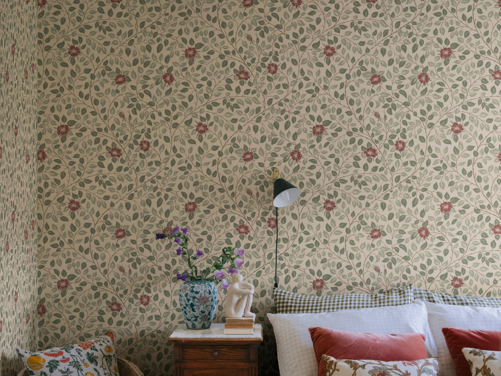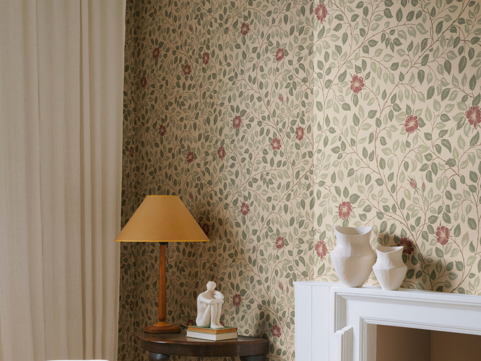 Geïnspireerd op de zomerse elegantie van het koninklijke Solliden-paleis op Öland, brengt het Solliden behang van Sandberg een sierlijk bloemendessin dat je kamer omhult met rust en verfijning. Bloemen en bladeren kronkelen over meerdere takken in een vloeiende beweging, waardoor een zacht, botanisch patroon ontstaat dat tegelijkertijd weelderig en luchtig aanvoelt. Ontworpen door Karolina Kroon met oog voor klassieke charme en natuurlijke harmonie.