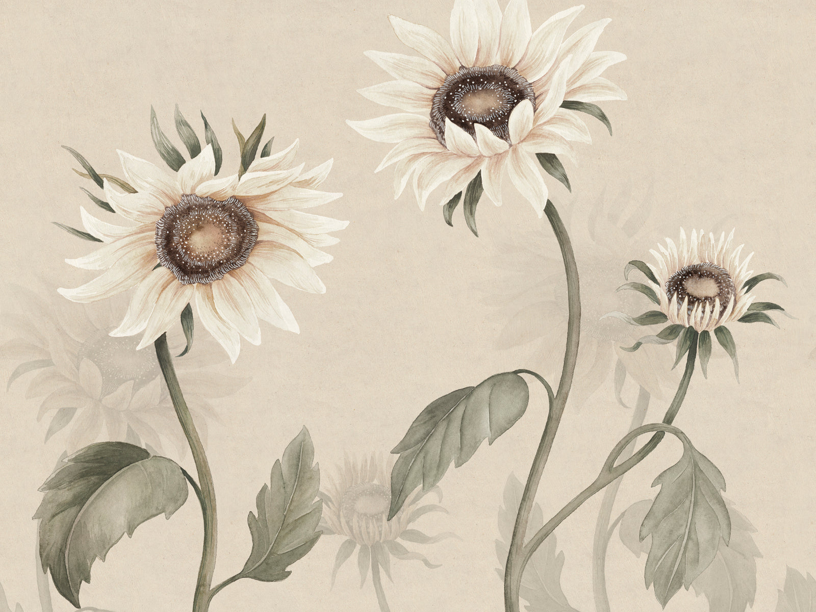 Laat de zomer eeuwig duren met het Öland Sunflowers panorama van Sandberg. Deze panorama muurbekleding toont een indrukwekkend bloemenpatroon met grote zonnebloemen op de voorgrond, terwijl subtiel vervagende exemplaren op de achtergrond zorgen voor een dromerig, gelaagd effect. De warme en natuurlijke uitstraling van dit botanische behang brengt meteen een zonnige sfeer in huis, geïnspireerd op het eiland Öland.