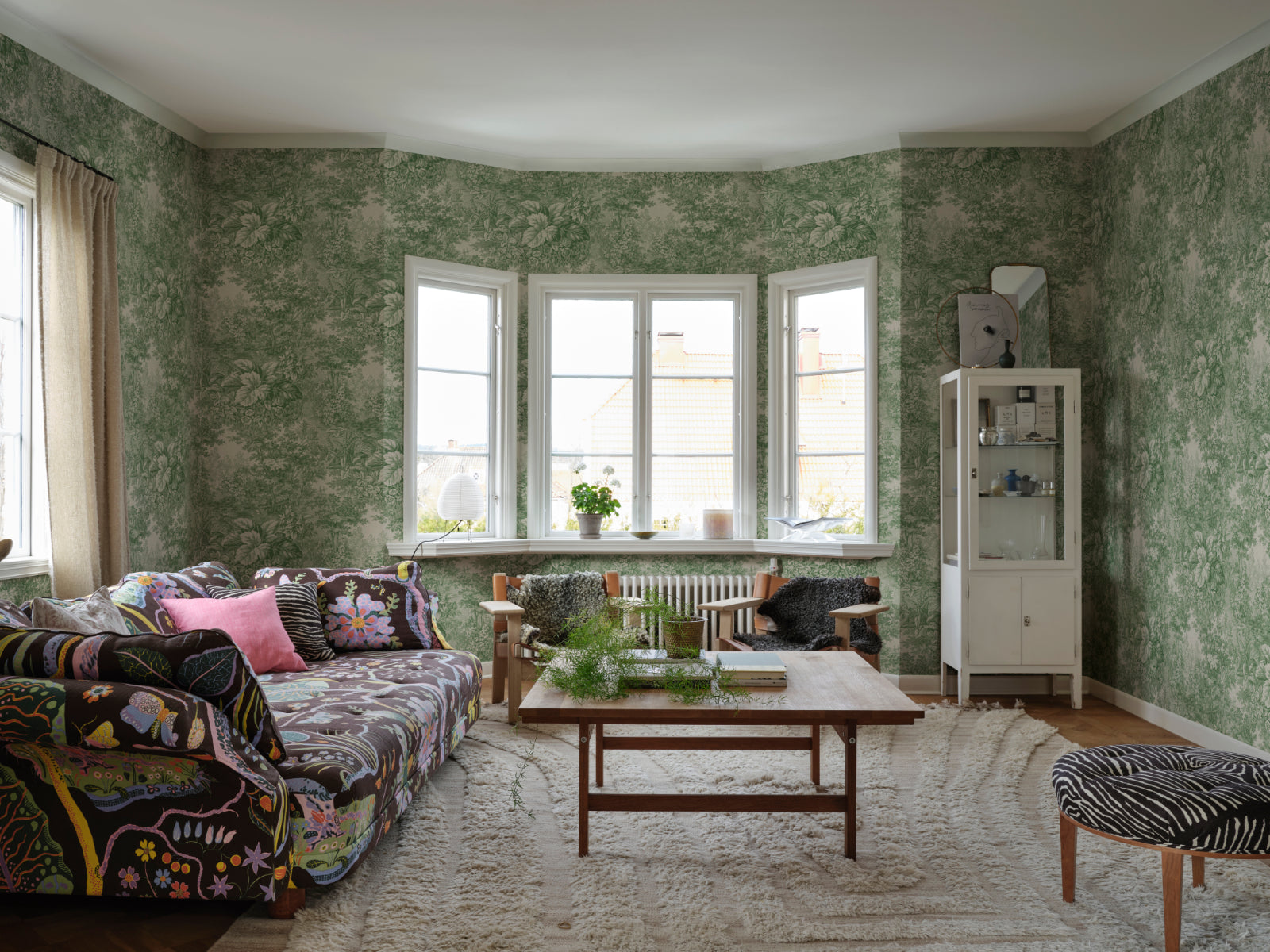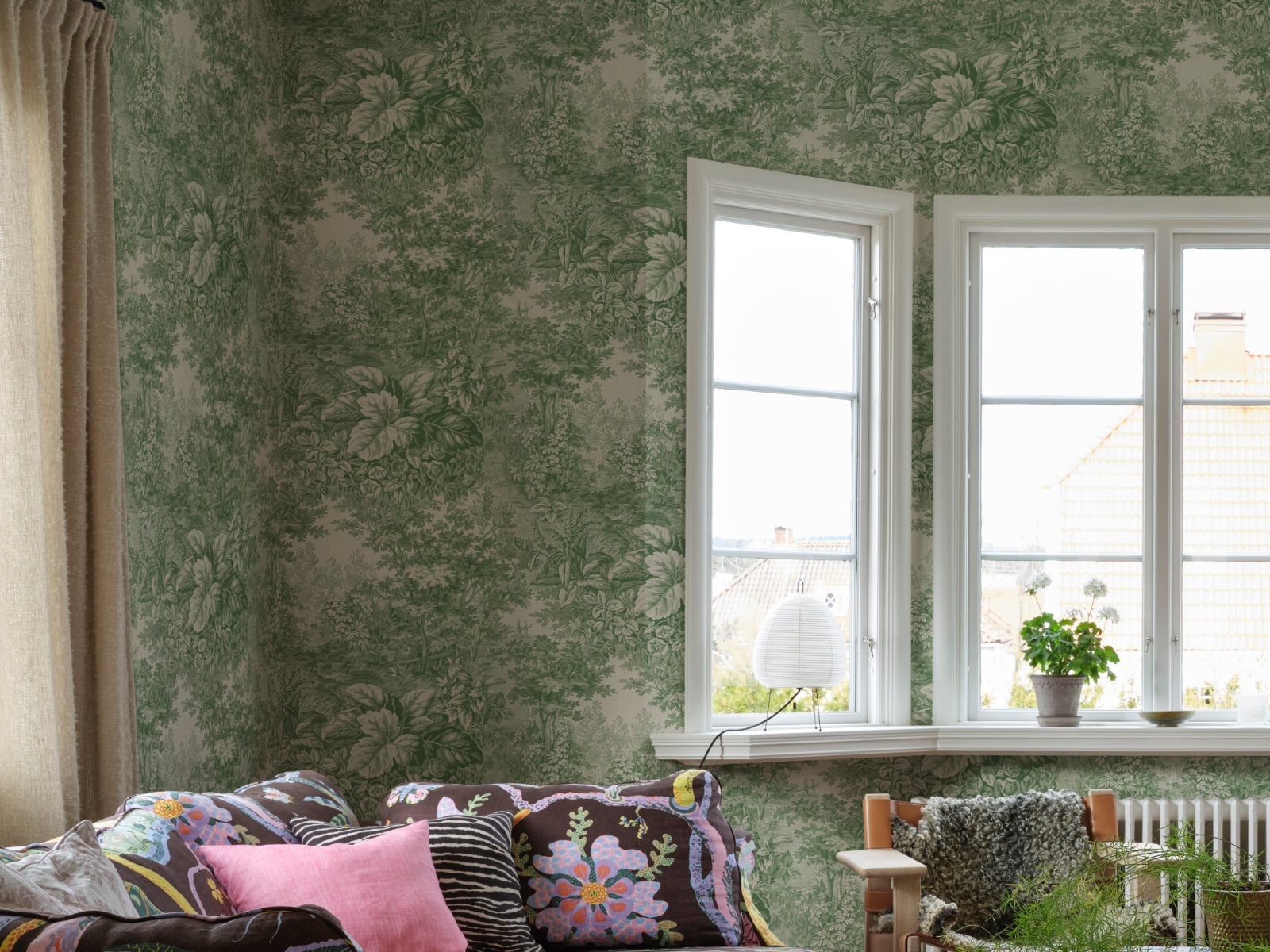 Tidlösa Forest Toile van Sandberg is een bijzonder panorama behang dat je meeneemt naar een sprookjesachtig boslandschap. Geïnspireerd op een 19e-eeuwse Franse textielprint, toont dit ontwerp weelderige natuur vol bomen, bladeren en een verborgen boomstam die als een natuurlijke brug fungeert. De rijke details geven je muren het gevoel van een omhelzende deken van natuur, rustgevend en indrukwekkend tegelijk.