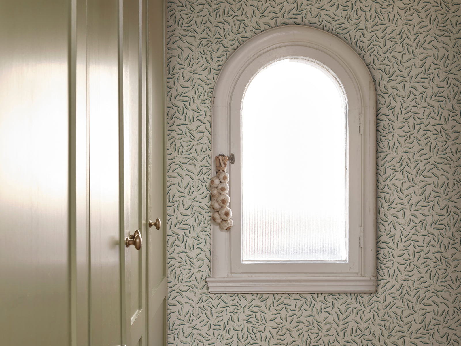 Sandberg Tidlösa Karolina brengt de rust van een weelderige kasteeltuin in je interieur. Het patroon bestaat uit verfijnde laurierbladeren die speels en organisch over de muur dansen, als een natuurlijke omheining vol sierlijke zachtheid. De herhaling van de bladvormen zorgt voor een luchtig ritme dat elegantie en rust uitstraalt.