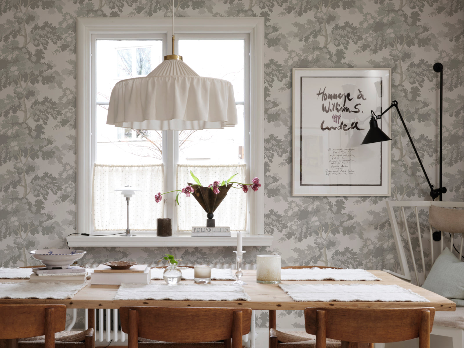 Sandberg Tidlösa Raphael is een iconisch botanisch behang dat een weids uitzicht op boomtoppen biedt, geïnspireerd door zowel Central Park in New York als klassieke wandbekleding. De bomen vormen een gelaagd patroon vol licht en schaduw, waardoor je muur tot leven komt met diepte en rust. Het subtiele spel tussen natuur en stedelijke elegantie maakt Sandberg Tidlösa Raphael tot een favoriet ontwerp binnen de collectie.