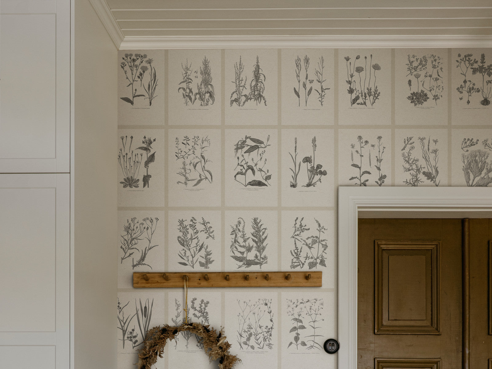 Laat je muur tot leven komen met Sandberg Trädgården Botanica, een panorama geïnspireerd op authentieke botanische prenten uit een Zweeds archief. Dit ontwerp voelt als een collage van zorgvuldig geselecteerde bloemen plantensoorten, alsof je een galerij van oude botanische posters aan de muur hebt hangen. Het resultaat is een sfeervolle en klassieke wanddecoratie met een warme, natuurlijke uitstraling.