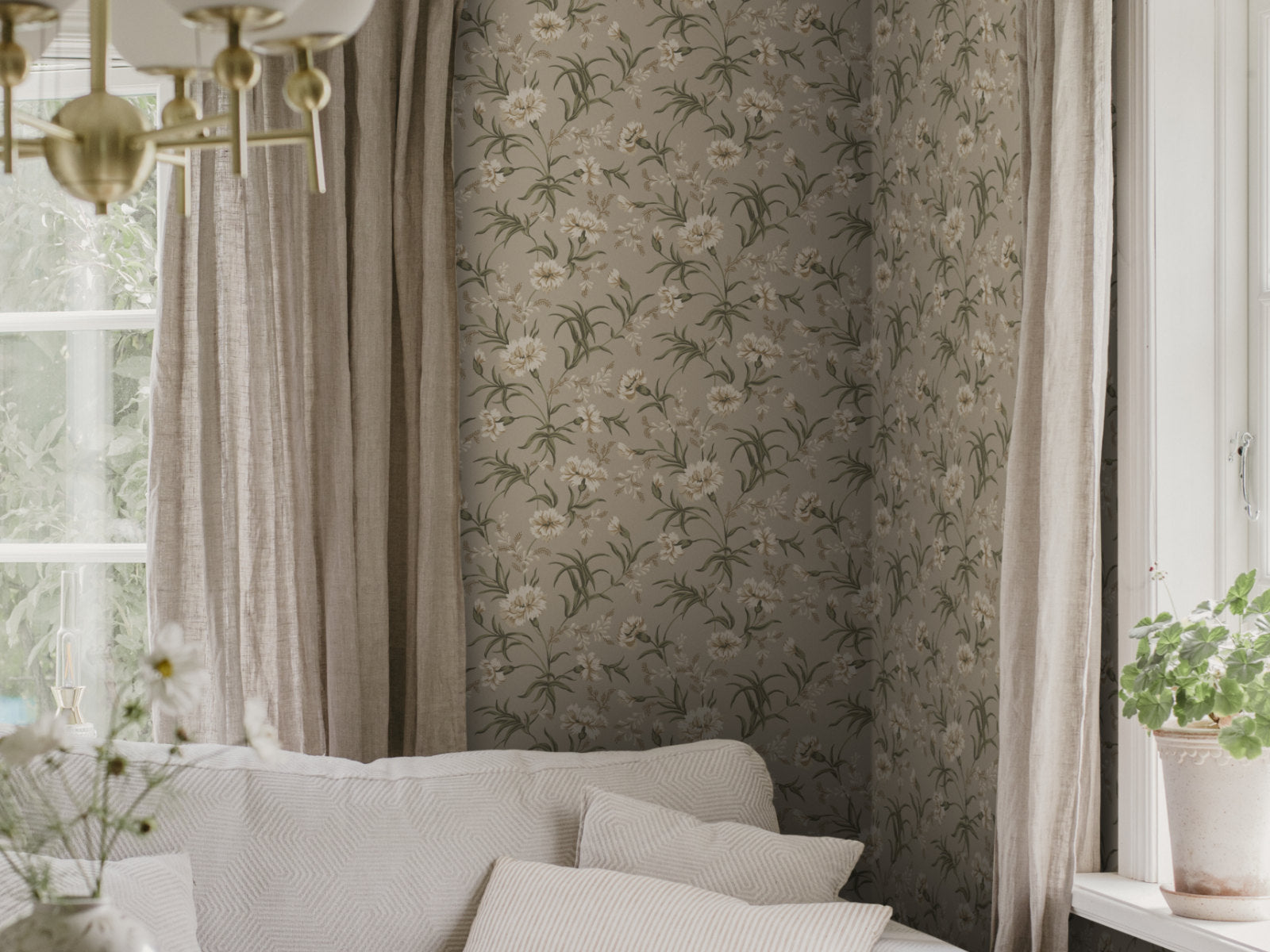 Breng een vleugje nostalgie en zomerse charme in huis met het Sandberg Trädgården Emilie behang. Dit bloemrijke patroon, gebaseerd op een origineel uit 1860, toont kleine trosjes anjers met fijne bladeren aan elegante steeltjes. De met aquarel geschilderde uitstraling en het zachte kleurgebruik maken dit behang tot een tijdloze favoriet. Verkrijgbaar in drie harmonieuze kleurvarianten die zowel romantisch als fris aanvoelen.