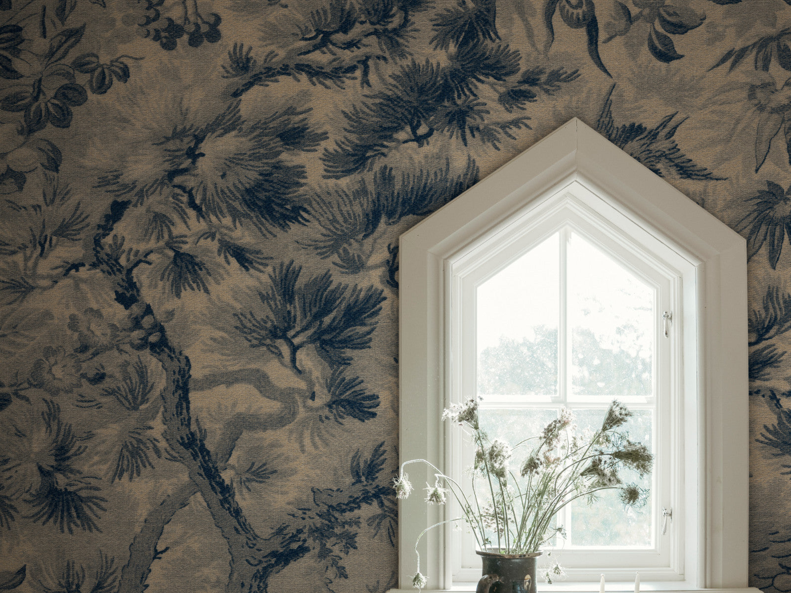 Stap een serene bostuin binnen met het Sandberg Trädgården Johannas Damm panorama. Dit botanische ontwerp omhult je ruimte met een weelderig tafereel van bomen, planten en subtiele bloesems, met hier en daar een vleugje bes. De zachte, textielachtige structuur geeft je muren een warme, uitnodigende uitstraling, alsof de natuur zelf je kamer omarmt.