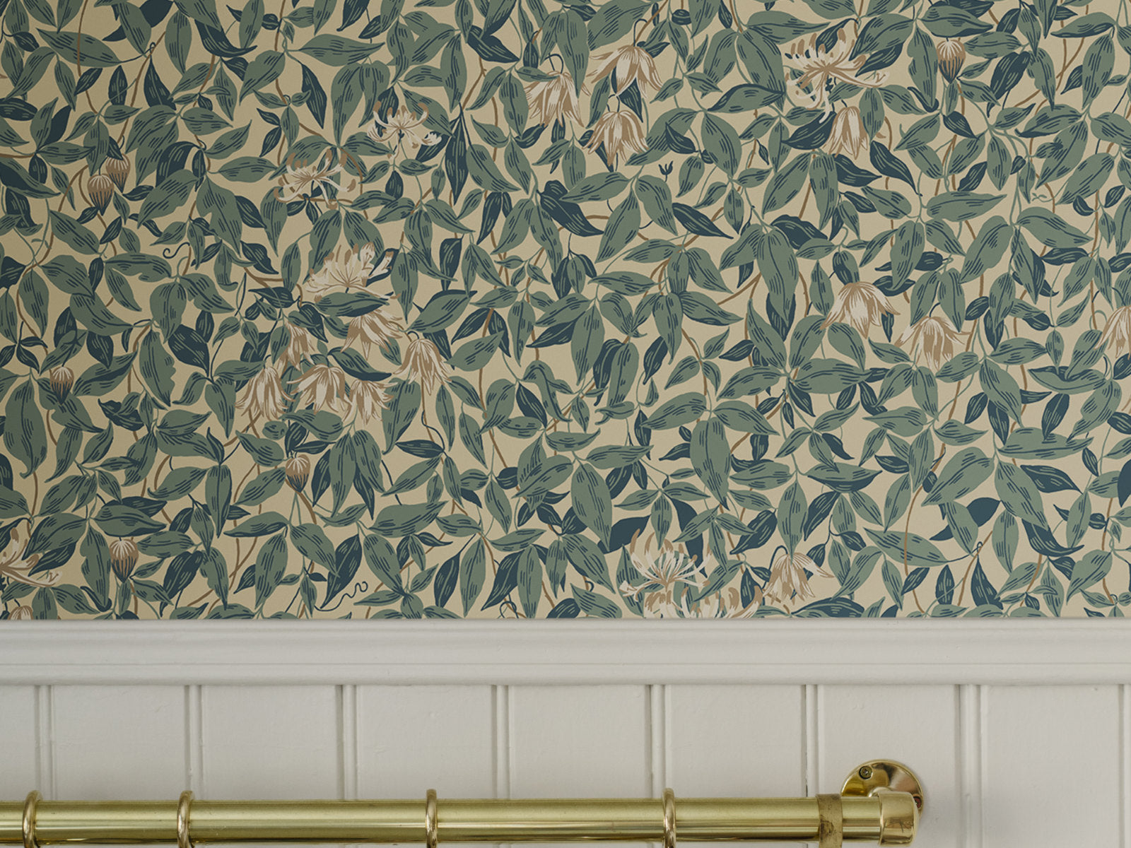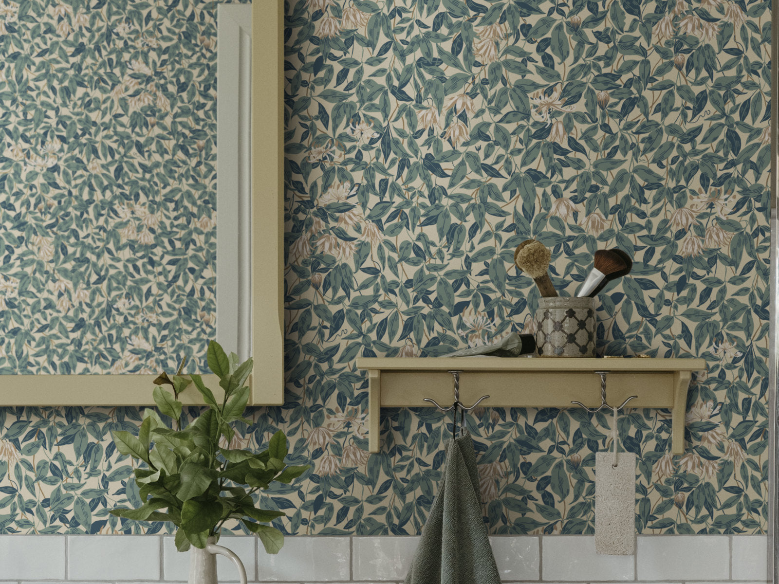 Breng rust en natuurlijk karakter in je interieur met het Sandberg Trädgården Linnea behang. Dit elegante botanische dessin toont weelderige, zachtgroene bladeren met hier en daar bloeiende clematis en kamperfoelie die subtiel tussen het groen opduiken. Het patroon voelt luchtig aan en straalt een kalme, evenwichtige sfeer uit die perfect is voor elke ruimte waarin je tot rust wilt komen. Verkrijgbaar in drie verfijnde kleurvarianten.