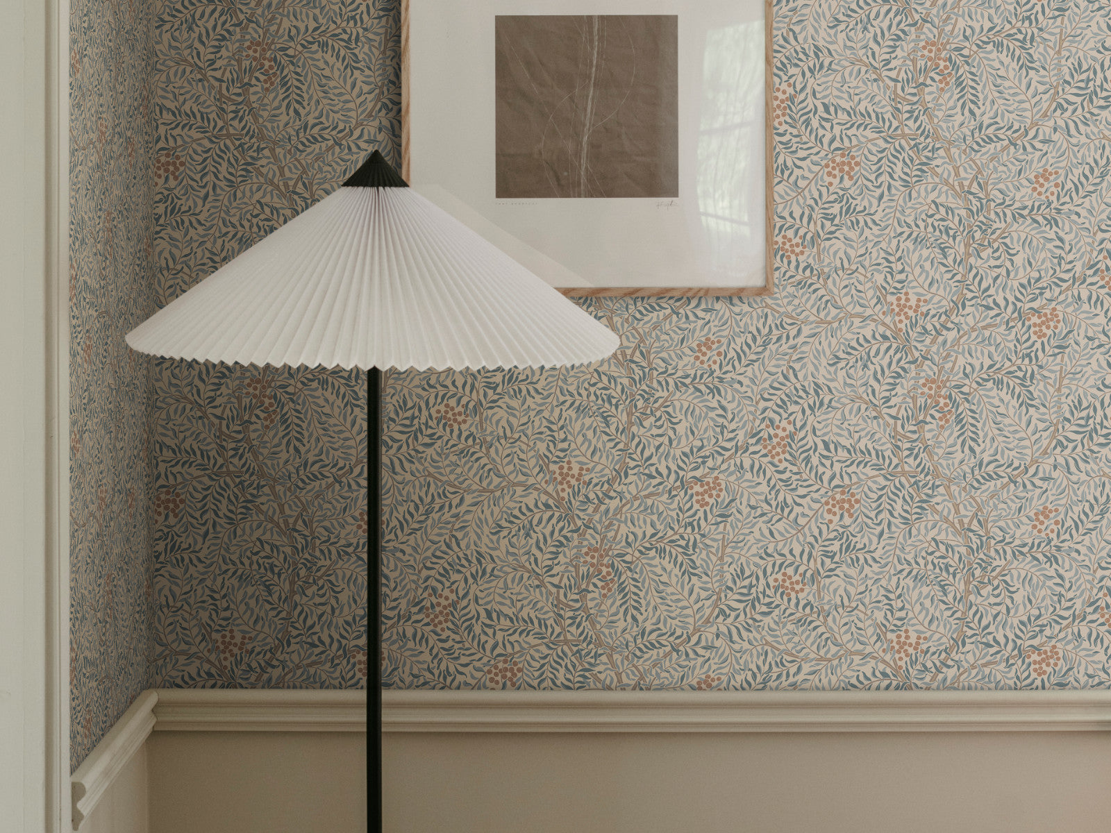Breng warmte en natuur in huis met Sandberg Trädgården Simon, een botanisch behang vol sierlijke lijsterbessentakken en verfijnde bladeren. Het ontwerp voelt als een zachte omhelzing voor je muren en creëert een gezellige, rustgevende sfeer in elke ruimte. De harmonie tussen bes en blad maakt dit patroon subtiel, maar rijk aan detail.